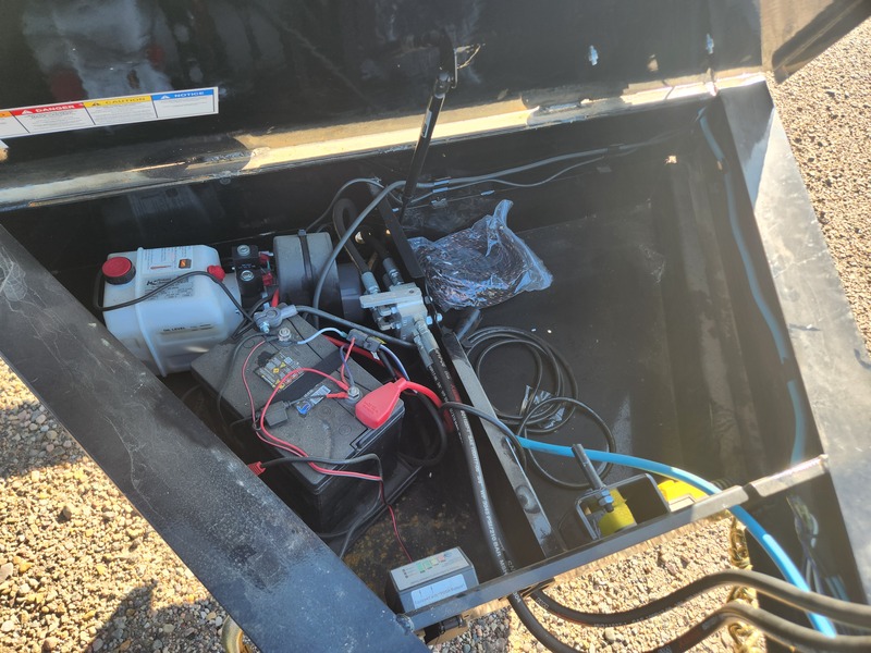 16' X 83" Dump, 2 5/16" BP, 2-7k Axles, Hydraulic jack, Full size divided tool box, solar charger, ramps, tarp kit