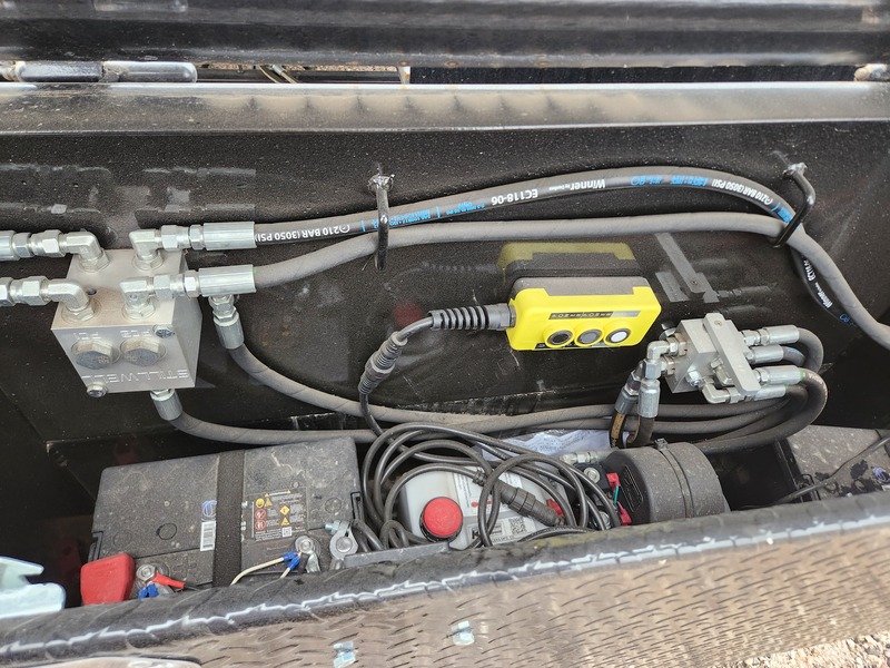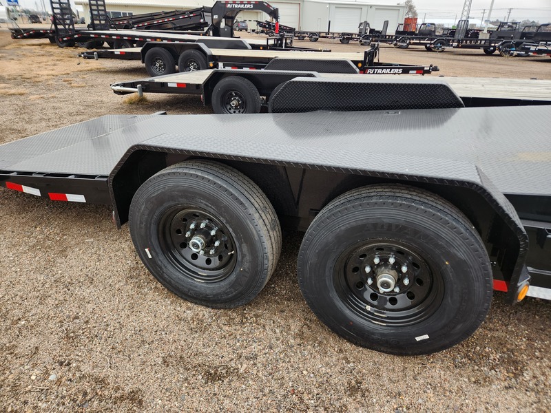 24' x 82" Gooseneck power tilt, 2-7K axles, 14 ply tires, steel floor, hydraulic jacks, light bar, 12K winch